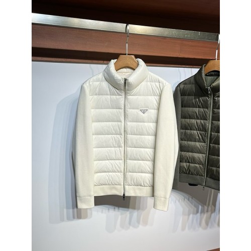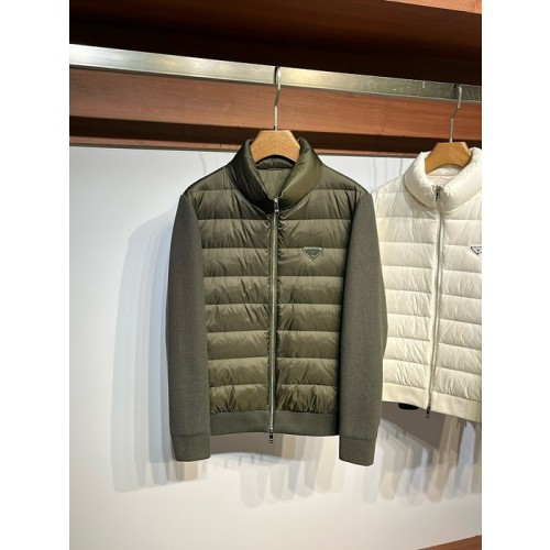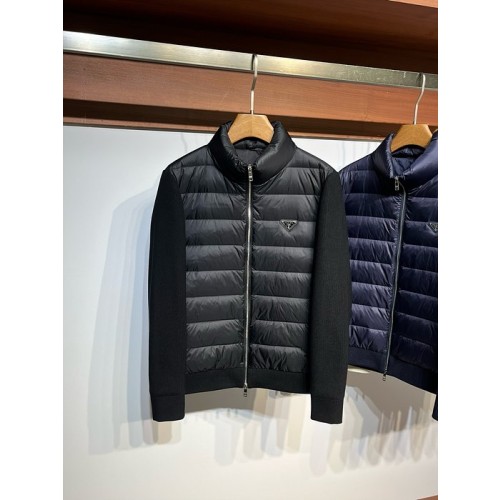 니트 패브릭 스티치 스탠드 업 카라 다운 재킷