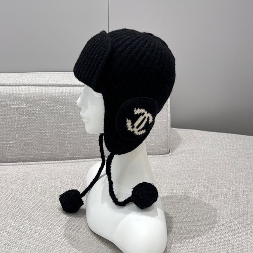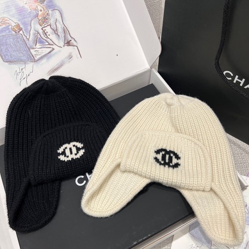 샤넬 CC 로고 이어플랩 니트 비니 (컬러 블랙, 아이보리)