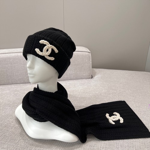 샤넬 코코 로고 니트 비니 & 머플러